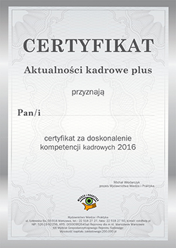 Certyfikat Aktualności Kadrowe Plus