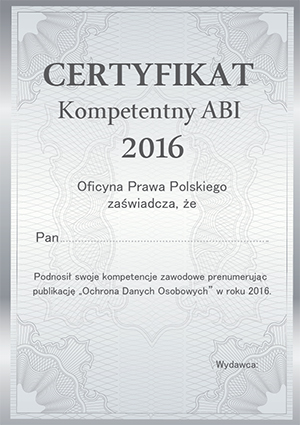 Imienny Certyfikat Kompetentny ABI 2016